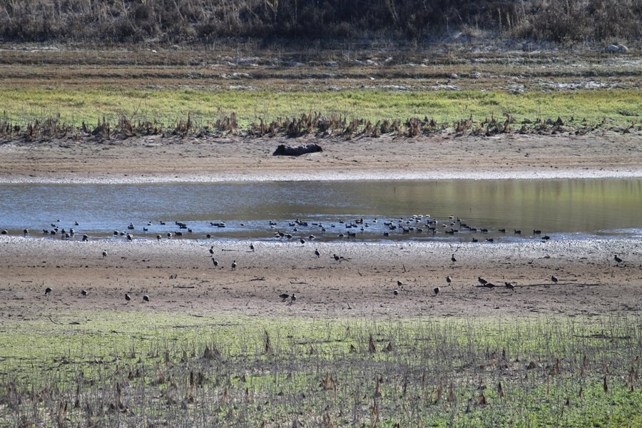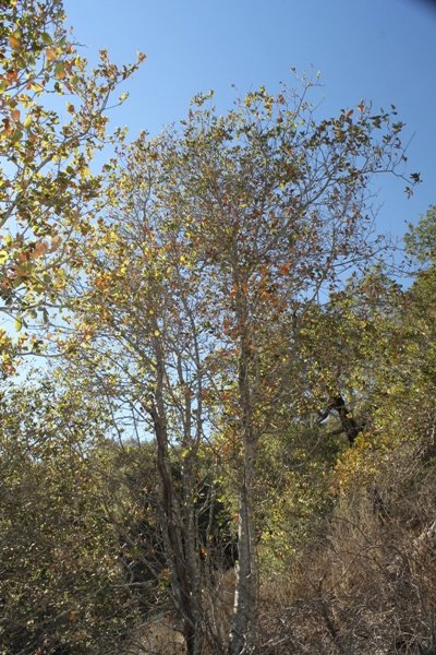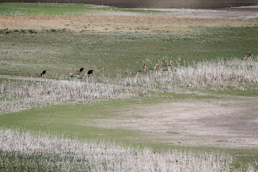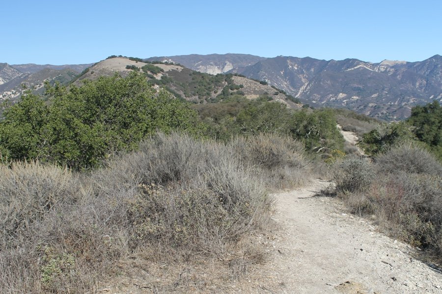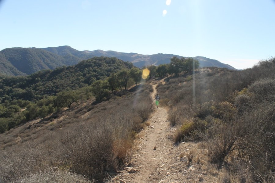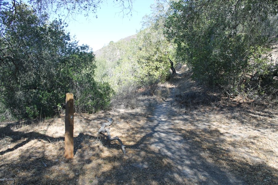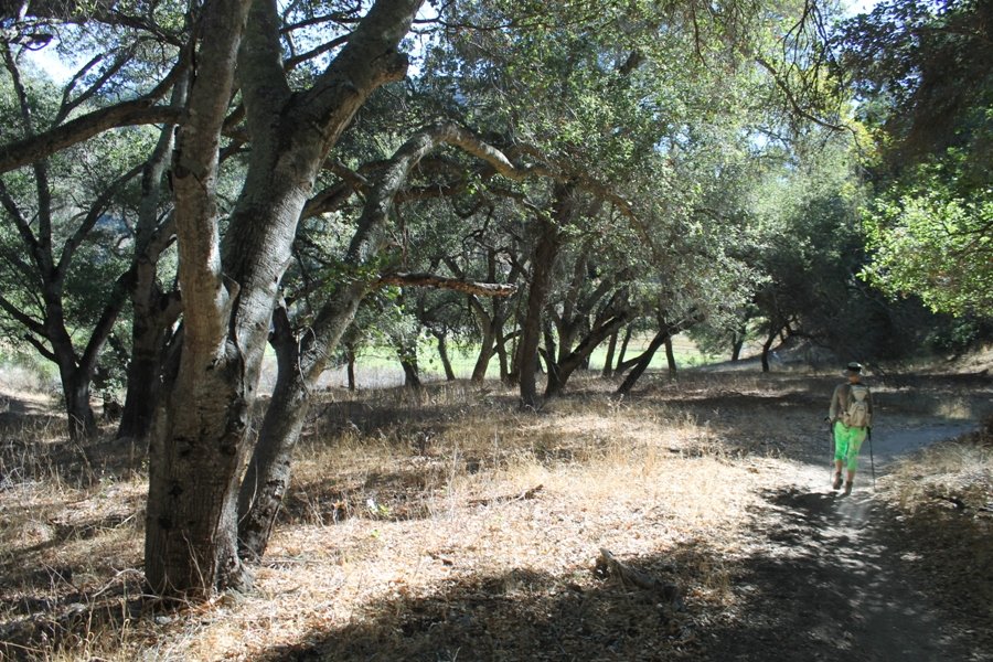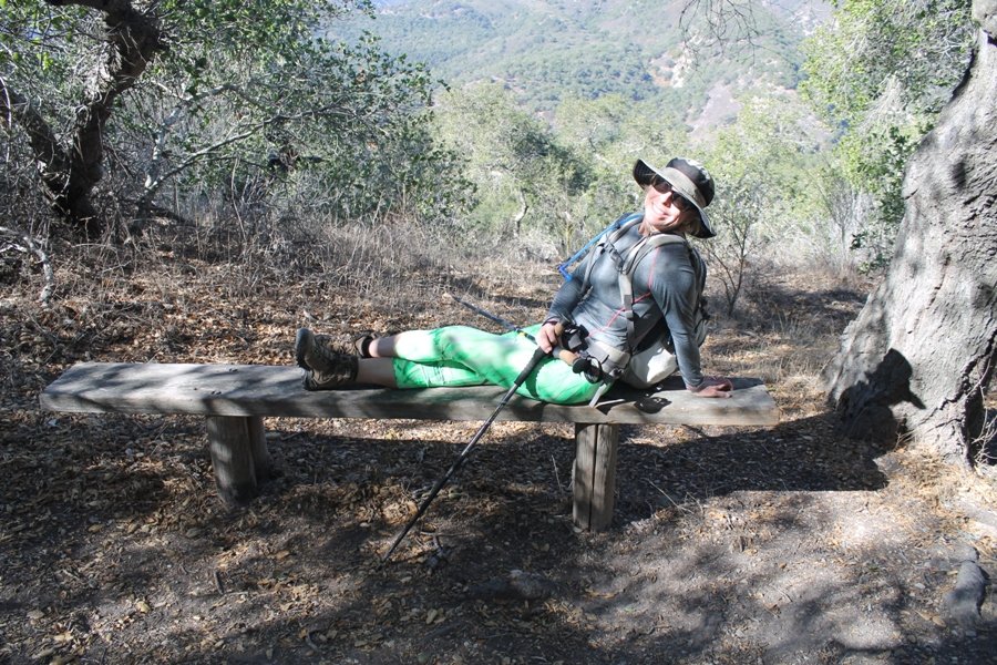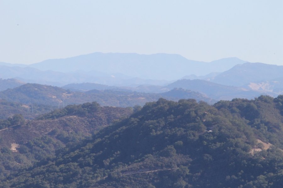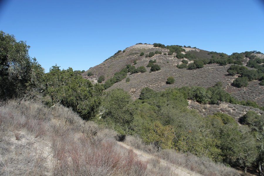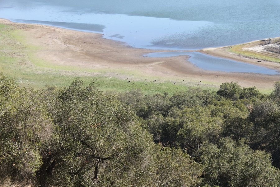 Okay, it’s time to buy a bigger 4WD vehicle. Our day began with an ambitious plan to hike both Big Falls and Little Falls Canyons northeast of Lopez Lake near Arroyo Grande, an 8+-mile endeavor that would require a drive up Lopez Canyon Road – though a county road, this route crosses Lopez Creek more than a dozen times to reach the Big Falls trailhead. Chris had brought the CRV thinking we might be able to pull this off, and we had high hopes as we set out from Pismo, expecting that water levels would be low enough to allow our easy and successful passage. We cruised up to the lake without incident, finding the Upper Lopez Canyon road just east of the lake facilities entrance. Initially paved with asphalt, the road climbs very steeply up the east side of High Ridge, traverses the ridgeline northward, then drops just as steeply down into Wittenberg Canyon, one of the tributary feeders of the lake itself. After passing some ranches and a Boy Scout camp, the road climbs again over a ridge before dropping into Lopez Canyon where the pavement ends. Here’s where it got a little hairy. Passing signs noting that high-clearance vehicles are required beyond this point, we reached our first creek crossing a few hundred yards later – the water looked to be maybe a foot deep and about 10 yards wide (we had failed to realize that Lopez Creek is fed by perennial springs, and that it is always flowing like this). We both got out to survey the situation, commenting that it would not be too cowardly to admit defeat right now and to go find a Plan B hike – however, the crossing held some sort of allure that begged us to at least give it a try, and we were near enough to civilization that we could probably get help if something went wrong. So, in we went. For Chris, the issue turned out not to be so much the depth of the water as it was how squirrely the car got as it crossed over the slippery rocks – for Jane, it was the depth, as is evident in her comments here (small children, please cover your ears). After this initial success, we made a second crossing shorter and shallower than the first before coming to a third crossing – here, we had to cross the creek at a more oblique angle, meaning we’d negotiate maybe 25 yards of water. Let’s do it, said we, and this was by far the craziest of the three – the CRV lurched and fishtailed, water steamed up from the warm engine, but we made it through and up the other side. Still catching our breath, we continued up the canyon for another hundred yards before coming to crossing #4 – although short in terms of distance, this crossing had steep sides and what looked to be deeper water, and we could see where other vehicles had torn up the dirt as they struggled to get up the other side. This was enough to finally deter us, so we made a 5-point turn on the narrow roadway and retraced our steps – the three re-crossings were just as manic the second time around, and it was great relief for us both to eventually get back to the pavement. As we drove back toward the lake, Jane flipped through our little guidebook and found a 7-mile hike at Lopez Lake – called the Duna Vista Loop Trail, this walk follows the lakeshore for the first 2-1/2 miles before climbing west to an overlook atop a ridge, then dropping southward off the ridge and returning north to complete the loop at the water’s edge. We made the half-hour drive back to the lake entrance, paid our day use fee ($10!), and found the Duna Vista trailhead at the end of the road. It was shortly after 11am when we set out past a closed access gate and north up a level road, reaching after a mile or so the Boy Scout camp we had driven by previously. Turning south, we made our way along the now-dry Wittenberg Creek, eventually reaching the lake just past the camp property. Here, what was until now a level road became a very pleasant singletrack that wound its way along the western shore of Wittenberg Arm (Lopez Lake is shaped in a V, one wing being Lopez Arm to the west and Wittenberg Arm to the east). We came to a junction with the Encinal Trail, part of the Duna Vista loop that switches back several times as it climbs westward away from the lake. As we gained elevation, we saw a small herd of about 15 deer below as they crossed a shallow cove of the lake before continuing north to graze on green grass along the lakeshore. At the top of the ridge, we came to another junction – the Encinal Trail continues north to a primitive walk-in campground another half-mile away, and we turned south to gain the Duna Vista overlook a few minutes later. A grand view awaited us, with the Santa Lucias to the north, the Caliente and Sierra Madre ranges to the east, and Arroyo Grande and the dunes to the south (we figure this view is what earned the overlook the name of Duna Vista). We ate our sandwiches here, the handful of people in outboard fishing boats on the lake being the only other humans we saw the entire 3+ hours we spent on the trail. The trip back began with a gentle descent southward along the ridge, but the drop back down to the lake was very steep in places, the trail apparently being an old jeep road judging from its width, and we were glad to have taken the Encinal Trail for our ascent. The deer were still grazing along the lake as we completed our descent, so out came the long lens to try and get some good pictures of them. We snapped several as we walked northward on the trail, gradually closing the distance between us and the herd. We reached a point closest to them atop a short bluff, and Chris was able to scramble down it to within about 50 yards before they got skittish. First, a buck ran swiftly to the north, away from the group, and the rest followed in groups of two or three. We proceeded quickly up the trail in an attempt to head them off, and we found several does congregating in a draw below us – the lead buck was nowhere to be seen, that is until Chris spotted his antlers in the bru