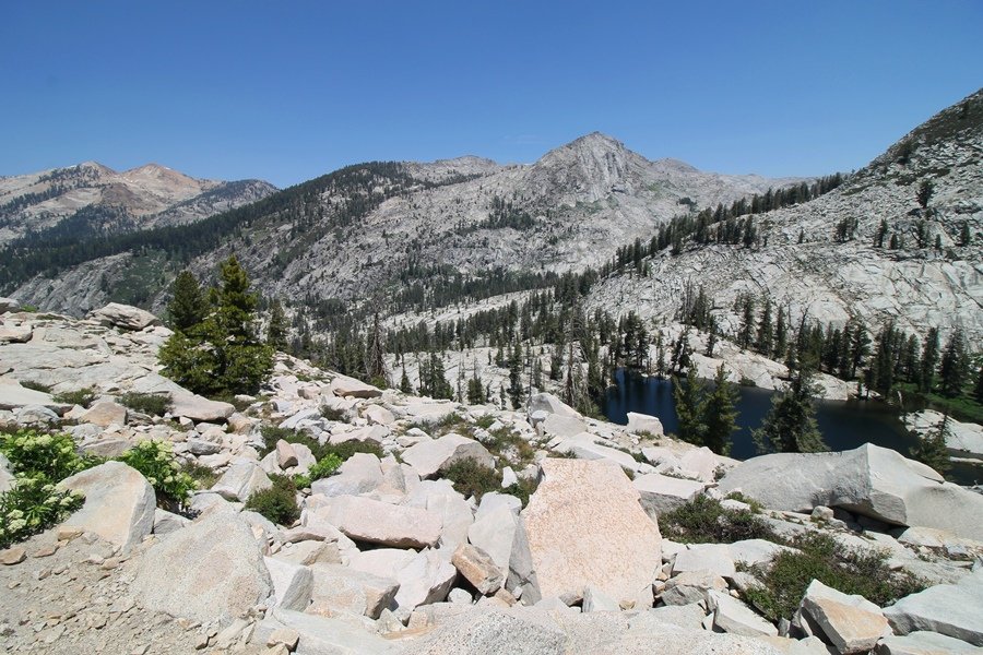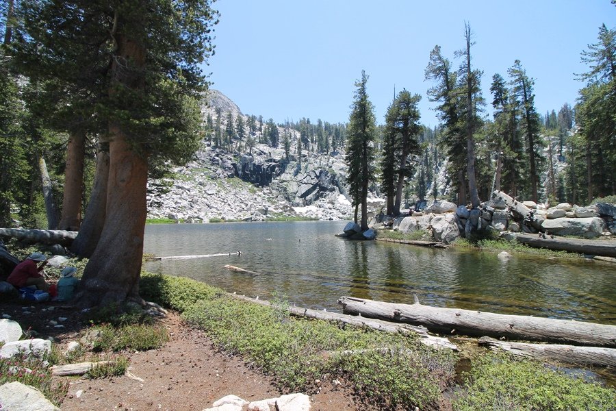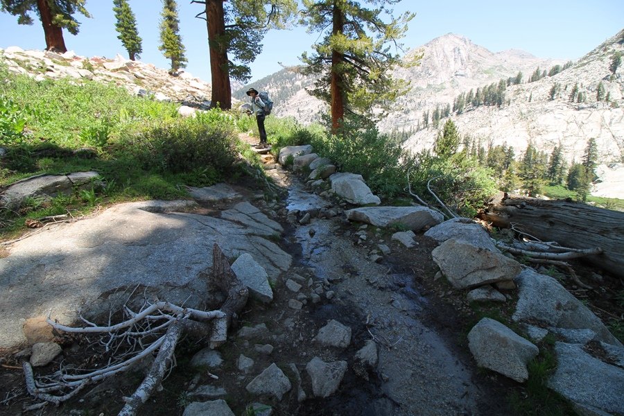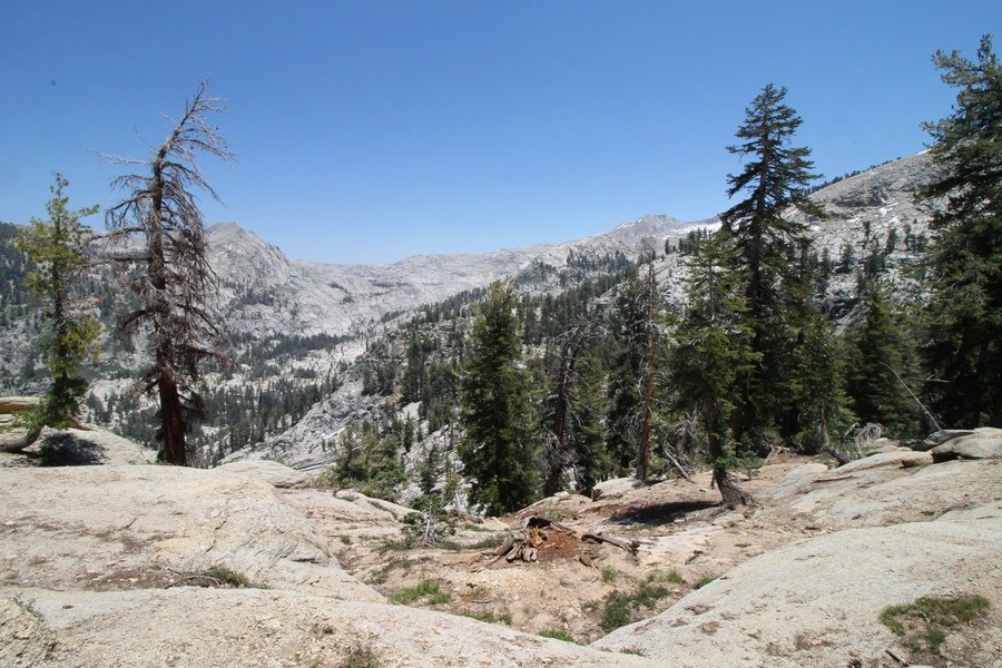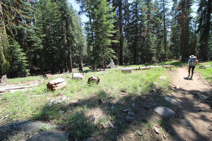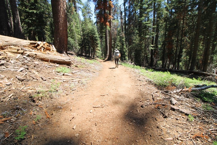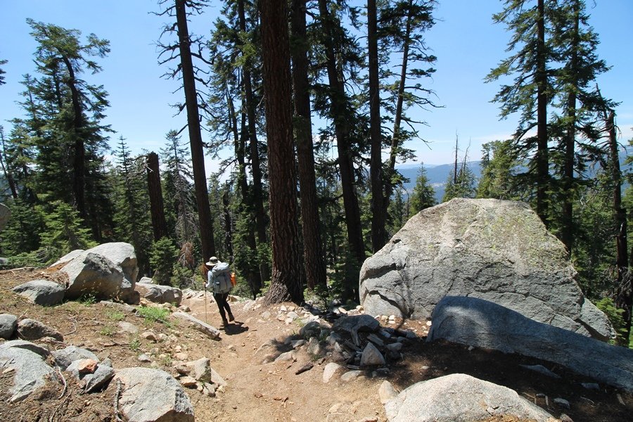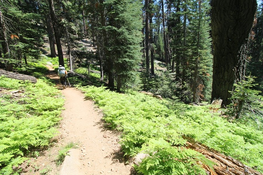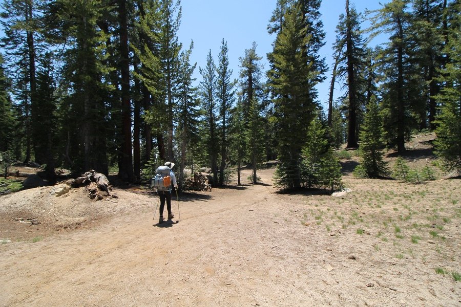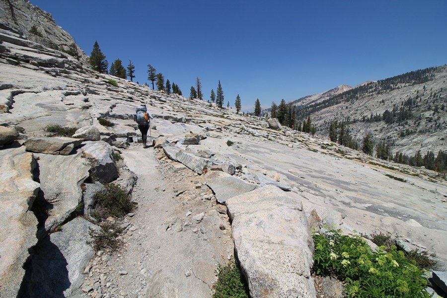 We’ve been gradually accumulating our backpacking gear over the last couple of years, and one of our first purchases we made were sleeping bags – they have down tops but synthetic bottoms, the idea being that down loses its insulating value when compressed whereas synthetics do so less. Our pads are lightweight air mattresses filled with fist sized holes and are designed for use inside one’s sleeping bag, again the idea being that the bottom insulation will loft through the holes and the pad will be as warm as the bag’s interior. Nice ideas, these, and we’re sure they work for some – however, they did not work well at all for us. Side sleepers we are, and our hips bottomed out through the pads unless we were on back or belly, and the thin synthetic undersides of our bags did not insulate well if, in our stirrings to find comfort on our pads, we exposed the bag bottoms to the nighttime air by twisting to any position but a horizontal plane. Long story short, both nights at Pear Lake were not at all comfortable, so now gear-junkie Chris has Jane’s approval to improve our sleep systems post-haste – a nice problem to have in the end. We took our time packing up camp, so long in fact that we were the last party to leave, save one other couple – taking some final photos at the water’s edge, we bade farewell to Pear Lake about 11:30am, proceeding north and west down the gentle grade and exiting the cirque. Our backs, of course, had been to the west on our way up Friday, and it was striking to see the western views now to our front – we had similar vistas yesterday on our way back from Moose Lake, but these seemed much more up-close-and-personal. We followed the trail as it rounded Pear Lake bowl’s west ridge, dropping southward into the Emerald Lake basin and exactly retracing our steps eastward from Friday afternoon. We passed a handful of day hikers and two backpackers heading up to Pear, and we soon found ourselves at Heather Lake again – we had planned only energy bars for lunch and we considered stopping at Heather to eat, but, once there, we met an eastbound solo hiker who reported seeing two bears on the trail near Wolverton. That news put Jane on high alert and killed her appetite, so we kept going, choosing to follow The Hump trail back west out of the Heather Lake basin. This trail, although lacking the grand views of The Watchtower trail, offered plenty of shady forest to walk through – the gradient on the west side of The Hump, however, was steep enough going downhill that we were happy we had chosen The Watchtower trail as our eastbound, uphill route. Other than being on bear alert, the trip west passed without much sensation – we crossed a spring-fed creek before dropping further south down the mountain, and we took an extended break and ate our light lunch at the edge of some large open meadows. Resuming our walk, we dropped further down, crossing another creek and rejoining The Watchtower trail – now on familiar ground, we picked up the pace a bit and finished the trip back to Wolverton without seeing any wildlife at all, much less any bears. Despite the sleep deprivation, our first backpack trip together was a great success – Jane got to visit some of the remote alpine country to which it’s really quite difficult to day hike, and we both completely enjoyed the experience of hanging out in the high country, cooking our simple meals and taking in the stunning scenery. A couple of our pack items are not worth the weight and will not be making any weekend trips in the future, namely our battery pack (device batteries easily lasted all weekend and did not require recharging), extra food that we didn’t eat, and a paperback book we brought but didn’t read. That said, a couple of other items were well worth their weight – our Alite Monarch chairs (a pound apiece) were awesome to have in camp, our Crocs were super-comfortable, lightweight but durable camp shoes (Jane’s been wearing them for years, but Chris is a more recent convert), and our Snow Peak titanium double-wall cups kept coffee hot for 45 minutes on 45 degree mornings. We’re already talking about adding another weekend trip to our summer itinerary, so hopefully we’ll have much more to write about here in the near future. In any event, we can attest to how Pear Lake stands out as a wonderful destination, whether visited by longtime trekkers or newbies – a fantastic trip.