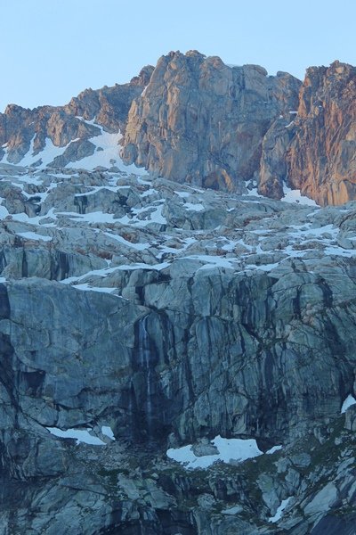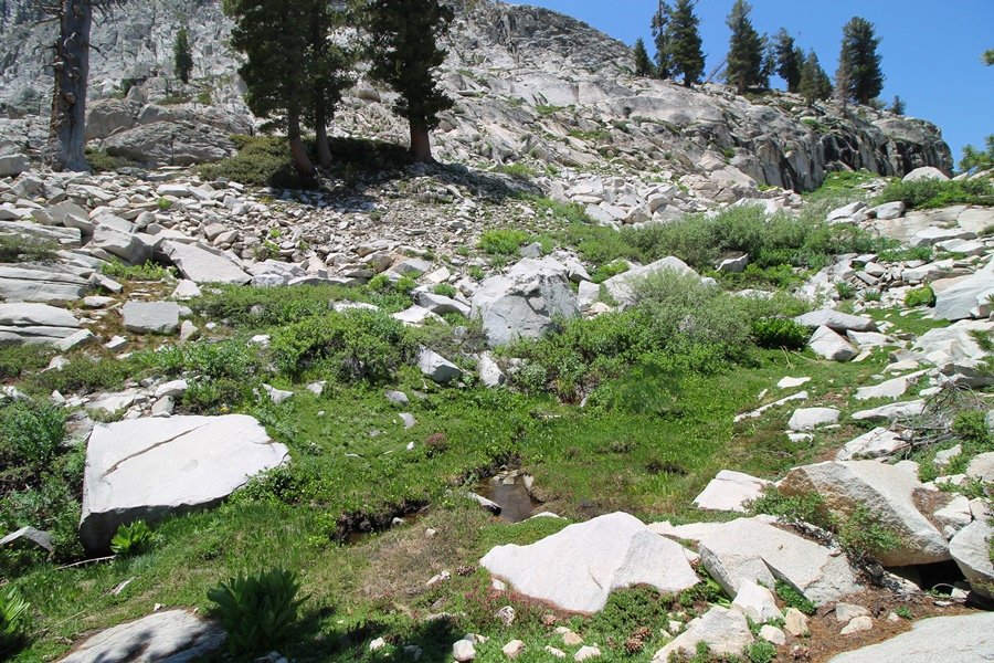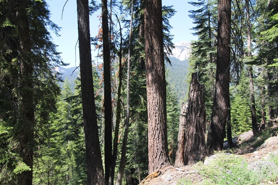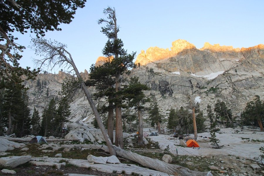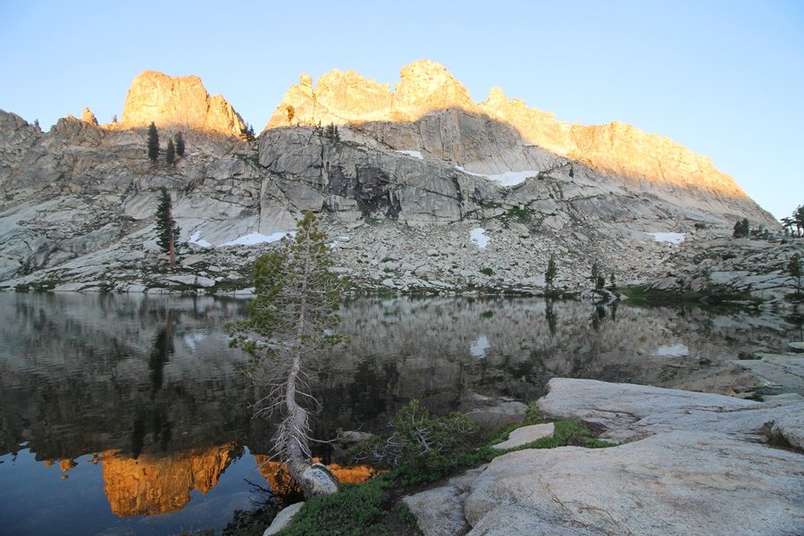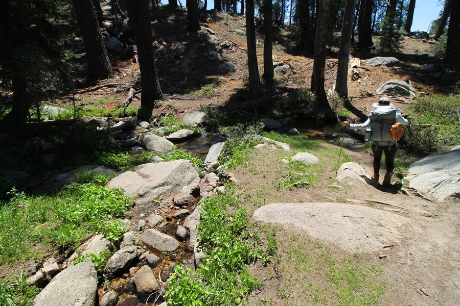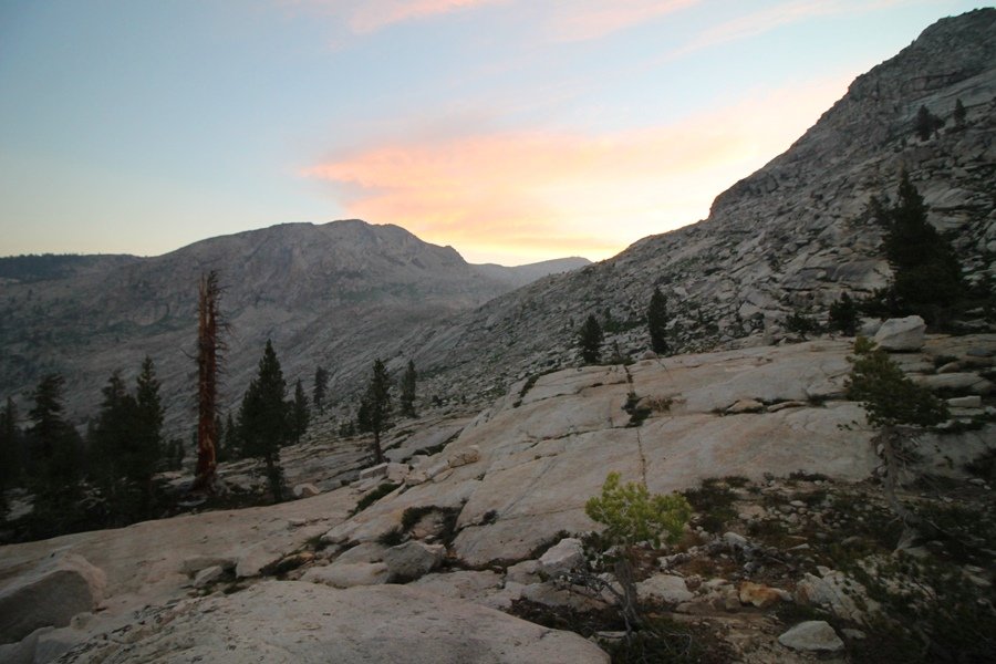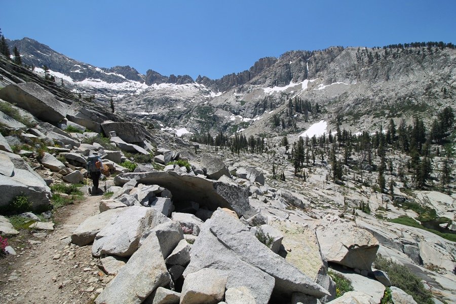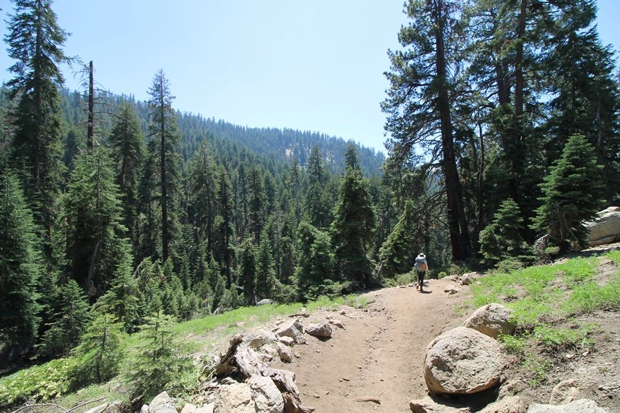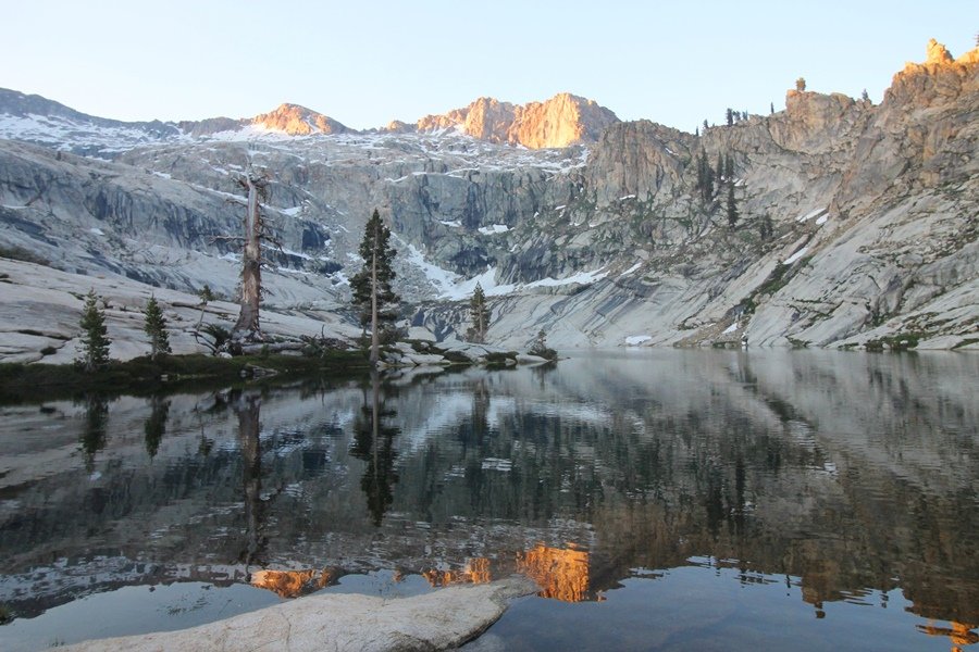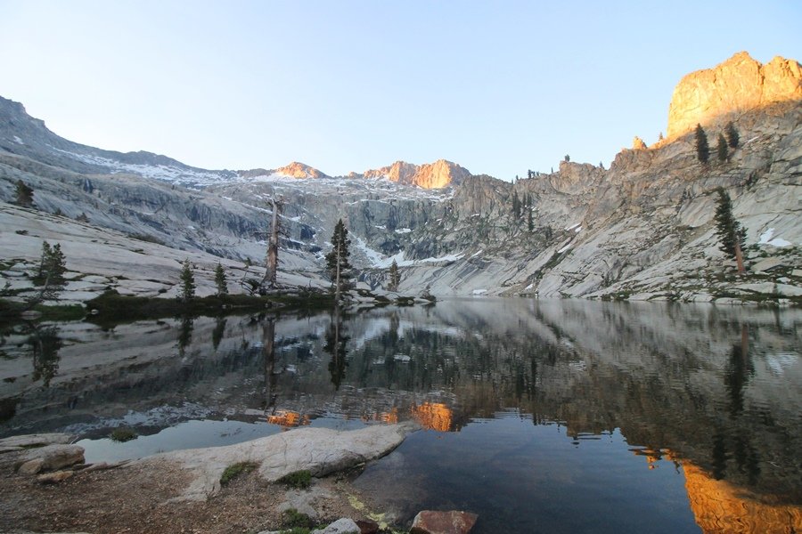 We’ve been gradually accumulating our backpacking gear over the last couple of years, and one of our first purchases we made were sleeping bags – they have down tops but synthetic bottoms, the idea being that down loses its insulating value when compressed whereas synthetics do so less. Our pads are lightweight air mattresses filled with fist sized holes and are designed for use inside one’s sleeping bag, again the idea being that the bottom insulation will loft through the holes and the pad will be as warm as the bag’s interior. Nice ideas, these, and we’re sure they work for some – however, they did not work well at all for us. Side sleepers we are, and our hips bottomed out through the pads unless we were on back or belly, and the thin synthetic undersides of our bags did not insulate well if, in our stirrings to find comfort on our pads, we exposed the bag bottoms to the nighttime air by twisting to any position but a horizontal plane. Long story short, both nights at Pear Lake were not at all comfortable, so now gear-junkie Chris has Jane’s approval to improve our sleep systems post-haste – a nice problem to have in the end. We took our time packing up camp, so long in fact that we were the last party to leave, save one other couple – taking some final photos at the water’s edge, we bade farewell to Pear Lake about 11:30am, proceeding north and west down the gentle grade and exiting the cirque. Our backs, of course, had been to the west on our way up Friday, and it was striking to see the western views now to our front – we had similar vistas yesterday on our way back from Moose Lake, but these seemed much more up-close-and-personal. We followed the trail as it rounded Pear Lake bowl’s west ridge, dropping southward into the Emerald Lake basin and exactly retracing our steps eastward from Friday afternoon. We passed a handful of day hikers and two backpackers heading up to Pear, and we soon found ourselves at Heather Lake again – we had planned only energy bars for lunch and we considered stopping at Heather to eat, but, once there, we met an eastbound solo hiker who reported seeing two bears on the trail near Wolverton. That news put Jane on high alert and killed her appetite, so we kept going, choosing to follow The Hump trail back west out of the Heather Lake basin. This trail, although lacking the grand views of The Watchtower trail, offered plenty of shady forest to walk through – the gradient on the west side of The Hump, however, was steep enough going downhill that we were happy we had chosen The Watchtower trail as our eastbound, uphill route. Other than being on bear alert, the trip west passed without much sensation – we crossed a spring-fed creek before dropping further south down the mountain, and we took an extended break and ate our light lunch at the edge of some large open meadows. Resuming our walk, we dropped further down, crossing another creek and rejoining The Watchtower trail – now on familiar ground, we picked up the pace a bit and finished the trip back to Wolverton without seeing any wildlife at all, much less any bears. Despite the sleep deprivation, our first backpack trip together was a great success – Jane got to visit some of the remote alpine country to which it’s really quite difficult to day hike, and we both completely enjoyed the experience of hanging out in the high country, cooking our simple meals and taking in the stunning scenery. A couple of our pack items are not worth the weight and will not be making any weekend trips in the future, namely our battery pack (device batteries easily lasted all weekend and did not require recharging), extra food that we didn’t eat, and a paperback book we brought but didn’t read. That said, a couple of other items were well worth their weight – our Alite Monarch chairs (a pound apiece) were awesome to have in camp, our Crocs were super-comfortable, lightweight but durable camp shoes (Jane’s been wearing them for years, but Chris is a more recent convert), and our Snow Peak titanium double-wall cups kept coffee hot for 45 minutes on 45 degree mornings. We’re already talking about adding another weekend trip to our summer itinerary, so hopefully we’ll have much more to write about here in the near future. In any event, we can attest to how Pear Lake stands out as a wonderful destination, whether visited by longtime trekkers or newbies – a fantastic trip.