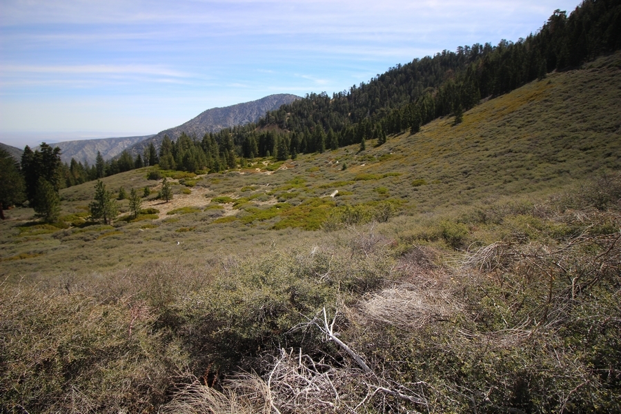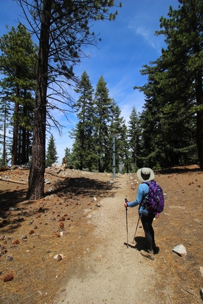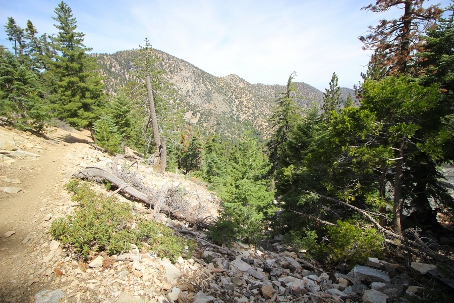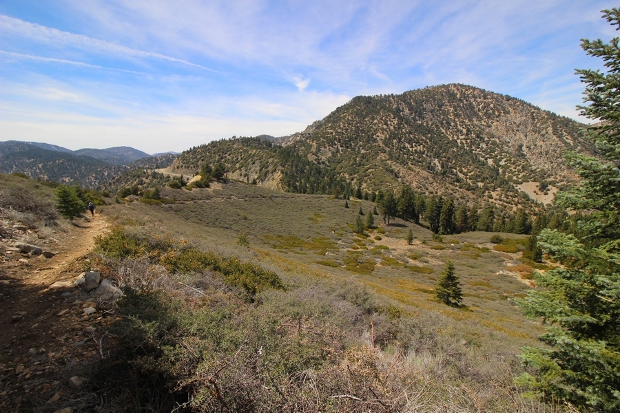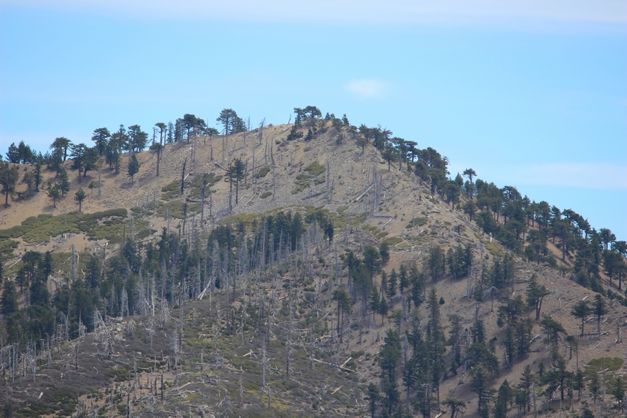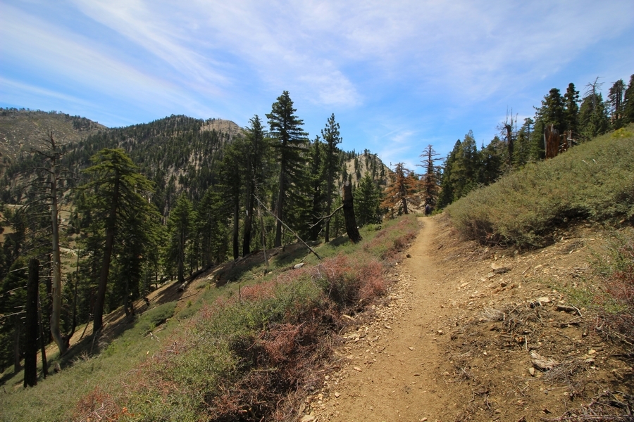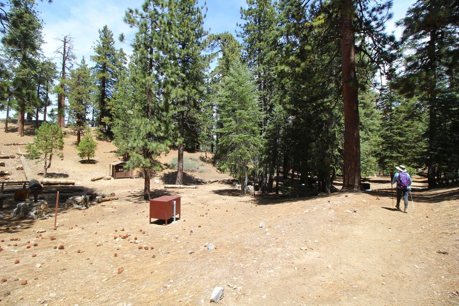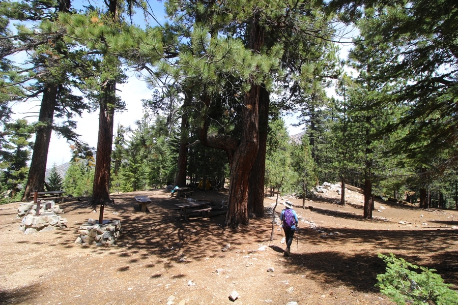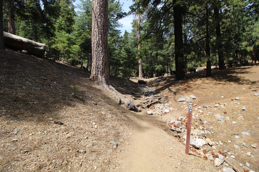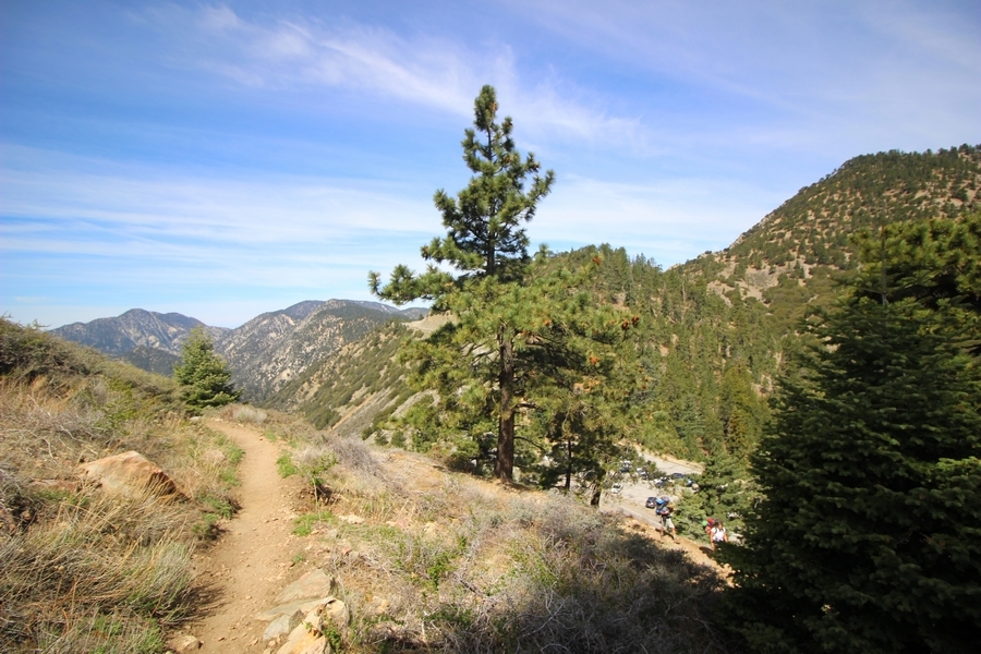 It was Cinco de Mayo, and we had that rare combination – or so it seems anymore – of a desire for exercise and a free day in which to do it. Of our various options, we settled on a repeat of our 2014 hike to Mt. Islip, elev. 8,261′, which we remembered to be about 7-ish roundtrip miles with manageable elevation gain for our lately-atrophied muscles. Plus, it would get us out on the PCT, the first thru-hiker waves of whom have been passing through Wrightwood over the recent weeks. We got to the trailhead at Islip Saddle a little after 10am, hitting the trail shortly thereafter – the initial grade seemed very easy, especially after no appreciable exertion for either of us since our Arizona trip in February. We continued to make decent time up the 800′ gain over the first mile, then transitioning to a mile-plus of flat ground on the eastward traverse to Little Jimmy Campground, the walk-in-only facility popular with both weekenders and PCTers this time of year. We were quite surprised to find a relatively empty camping area as we passed – perhaps it was a little early still on Saturday for newcomers, and of course the thru-hikers would have been several miles further west at this late hour. A short while later, we finished the mild climb up to Windy Gap where, not surprisingly, there was a fresh, cool breeze blowing northward – despite wispy clouds high overhead, the sun was at its zenith and it felt quite warm, even in the shade of the forest, but the breeze here made it feel 15 degrees cooler. After a brief pause for some photos, we started west from the gap up the Mt. Islip trail, through a moderately steep section at first that gradually eased into a mild gradient up the peak’s east ridge. Chris stopped a few times for photos (and, admittedly, to catch his breath) while Jane surged ahead, which is usually a recipe for disaster. He had spotted her once or twice in this section a couple of hundred yards above, so he knew she wasn’t far away. The trail traverses about 100′ below the summit across the south face of the mountain – here, there’s a junction with the Big Cienaga trail that leads up from Crystal Lake. Chris reached the junction and took the right-hand fork, following the uphill arrow and ignoring the downhill arrow for Big Cienaga to the left. As he climbed higher, he spotted Jane on the other trail about 300 yards below to the west – he hollered several times before she turned around, confused, and she yelled back she had followed the arrow. Apparently, she hadn’t seen the uphill arrow at all, and was quite proud of herself that she had correctly followed the signs. Sigh. (On our way back, Chris found a fallen sign at the Big Cienaga junction that would have certainly indicated more clearly the correct way up had it been standing – Jane felt vindicated, which is always a good thing.) Reunited after her backtrack up to the summit trail, we reached the summit just under two hours after we started. We ate our lunch of protein bars and shakes (Jane had an apple as well) and enjoyed the sights – Catalina was just visible through the marine haze. Leaving the summit after about 30 minutes, we followed the trail eastward down the ridge to a junction with an alternate trail above Windy Gap, one leading directly back down to the campground. We took this fork just to go somewhere new, and it was entirely unexciting save for running across a slender tower in the middle of nowhere that served no apparent purpose – hmmm. Back through the campground we went, then back westward down the PCT to Islip Saddle – we made much better time on the way down, summit-to-saddle in 1:15. This is one of our favorite hikes – we of course saw many hikers, most of them going the distance to Canada, but it’s the views from Windy Gap up to the top that make this hike so appealing, a very high reward-to-effort ratio. The weather helped greatly – warm enough that it was never chilly, even in the wind, but not so warm as to be uncomfortably hot. A great day.