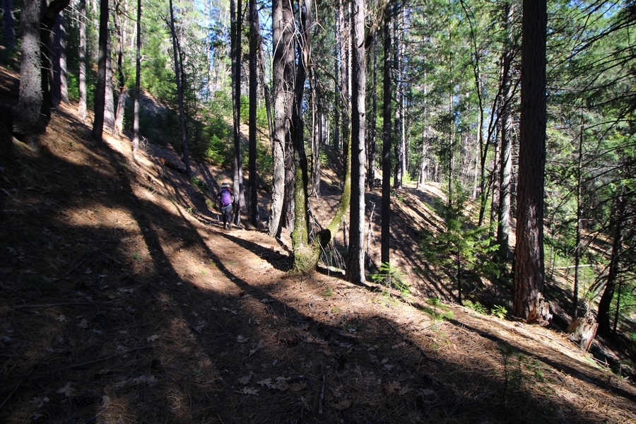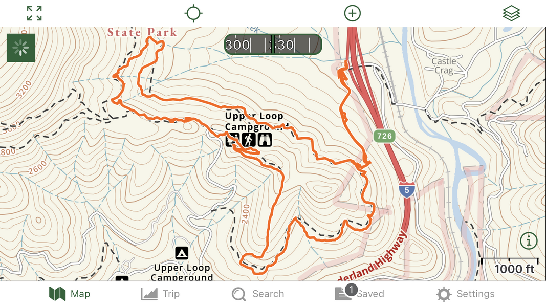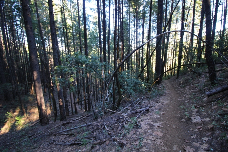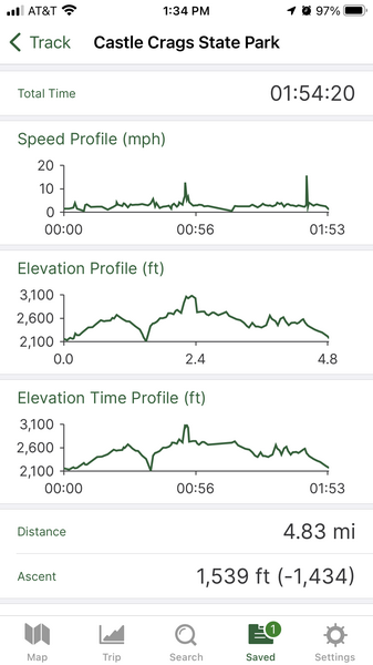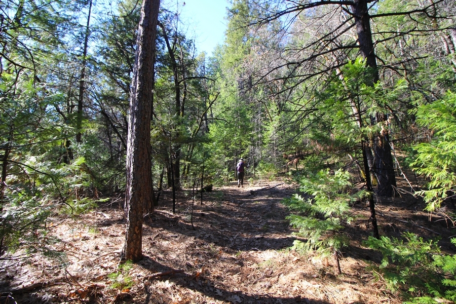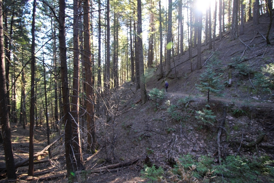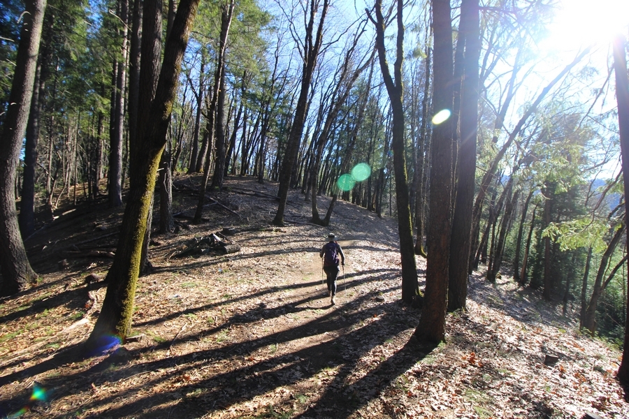 Chris’ mom, who lives in the Seattle area, was having a medical procedure in late January, so we decided to make the drive up north to help her get settled through her recovery. We made the trip in semi-leisurely fashion, spending a couple of nights at hotels along the I-5 corridor on the way. Our first night was spent in the Sacramento Valley town of Willows, and this fine Saturday morning saw us rise reasonably early and drive roughly two hours northward to the Soda Springs trailhead, where the PCT crosses I-5 near Dunsmuir. The trailhead lies adjacent to Castle Crags State Park, and our original plan was to hike the PCT west and south into the park, then follow the steep park trail up to Castle Dome, one of the area’s most notable features. There were a couple of vehicles in the gravel parking area when we arrived about 10:30am, some old snow and ice covering the initial parts of the trail that was quite slippery in the chilly shade as we started out. The trail immediately starts southward above the freeway, increasing its gradient quite sharply for 200 vertical feet until it reaches an old logging road, where it turns west and begins a mile-long traverse that is virtually level. Near the end of the traverse, the trail bears northward for a short distance before doubling back south, leaving the old road in favor of a pretty singletrack that gently ascends to the level of the ridgeline immediately to the south. As we met the ridge, we arrived at the turnoff for Castle Dome, but we’d decided at this point to forgo the steep (and, we thought, icy) 2,000′ climb. Instead, we followed the trail eastward to the park’s upper parking lot and viewpoint, where we found the only other people we’d see on the hike, admiring the views west to the crags and northeast to Mt. Shasta. We had considered retracing our steps back to the car, but we saw an alternate route on our map marked as the Kettlebelly trail, that would drop us south off the ridgeline and loop back around to the east and north where we could again pick up the PCT. This section was the prettiest of the loop, sunny now where most of the ascent had been in deep shade. Once we’d regained the PCT, it was a short hop down the hill to the trailhead. In total, we spent just under two hours on the route covering about 5 miles with maybe 500′ of total elevation gain (the GPS mistakenly captured a non-existent descent/ascent in the first half of the hike). The only casualties of the day were Chris’ trekking poles, which he apparently left leaning on the Explorer before driving off, an error he would not discover until the following morning when we were several hundred miles north near Salem, OR (we did stop here a couple of weeks later to see if maybe someone had found and stashed them somewhere, but no such luck). There are other options for short loop trips from the Soda Creek TH that make for a great way to stretch one’s legs and break up a long drive, so maybe we’ll get back to Castle Crags at some point, ideally with some warmer weather.