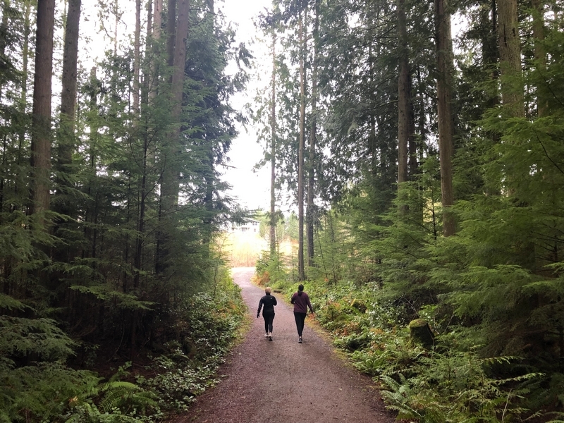 After a week-and-a-half in Redmond, WA, we were looking for something to stretch our legs and get outside. Chris’ sister, Anne, met us at Chris’ mom’s apartment in Redmond Ridge and offered to show us the walking trails in this neck of the literal woods, so the three of us headed out just after noon. Directly out the south end of the complex, we followed the trail west and south for about a mile downhill through a low drainage. Passing through pretty forest and grassy meadows, we turned east to climb out of the vale and up to a crossing of one of the main avenues in the area. We turned southeast and followed the road for a bit, the forest views being temporarily replaced by homes and light traffic. We soon came to a junction with a trail that would take us northward, re-entering the tree cover and meandering through the mossy foliage for about a mile-and-a-half before reaching a small industrial park where we turned west and walked along surface streets back to the apartment complex. In all, we covered over 4 miles in 80 minutes, so the walk was fairly brisk. Such a change to have beautiful scenery so close to one’s door.